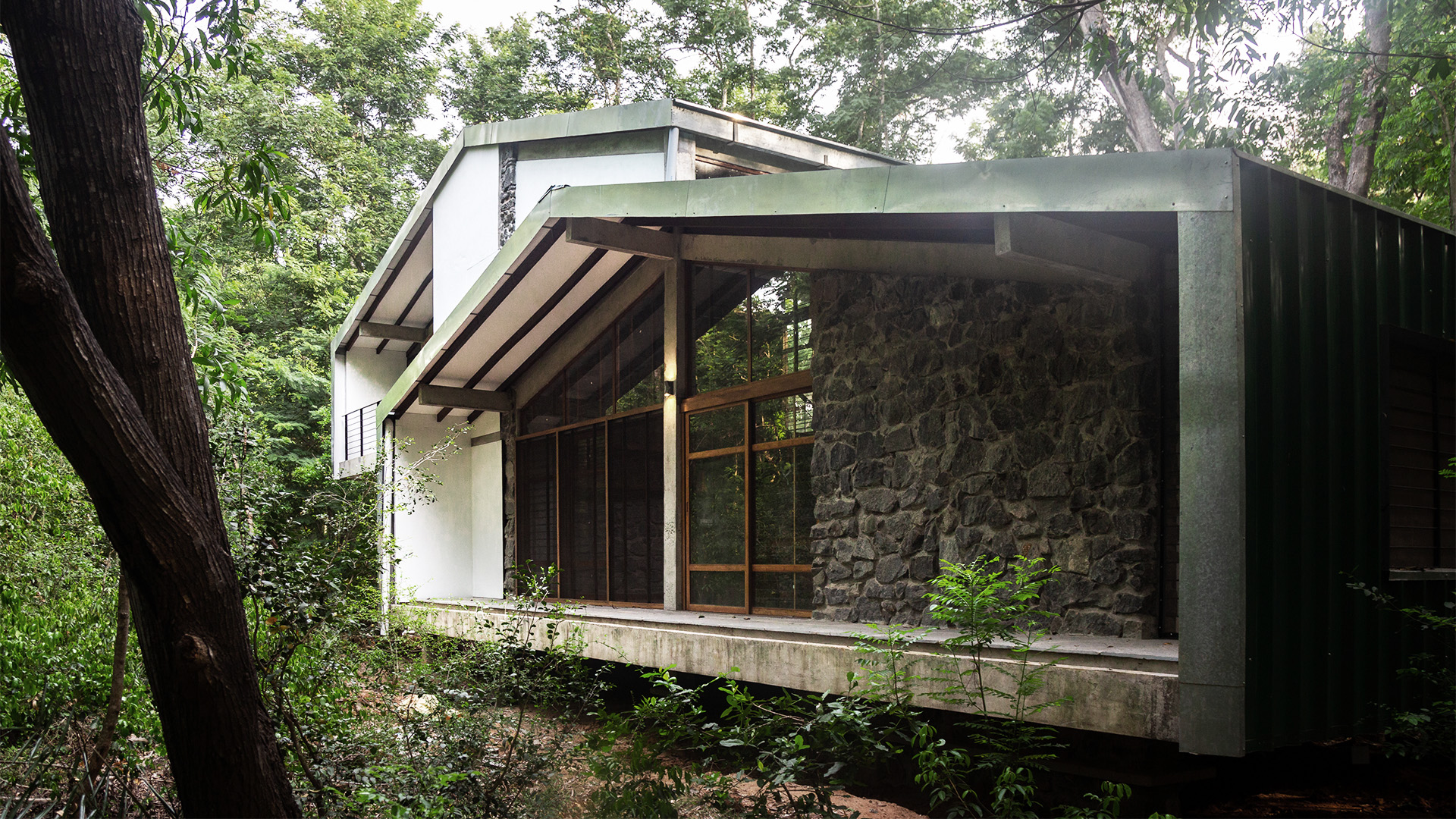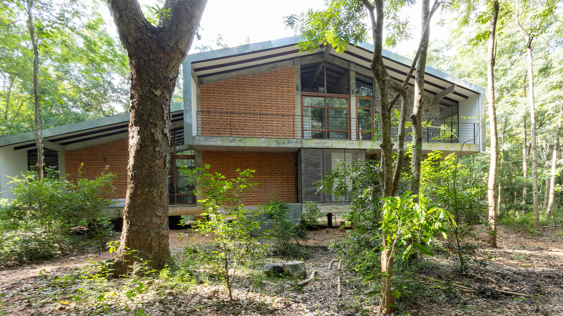This little forest house is located in the experimental township of Auroville and is planned as a permanent home for a couple. Carefully placed into a 5 acres forest that is managed by them, the spaces are created with the intent to highlight the constant and harmonious interaction and coexistence, a synergy between the forest and the caretaker.
