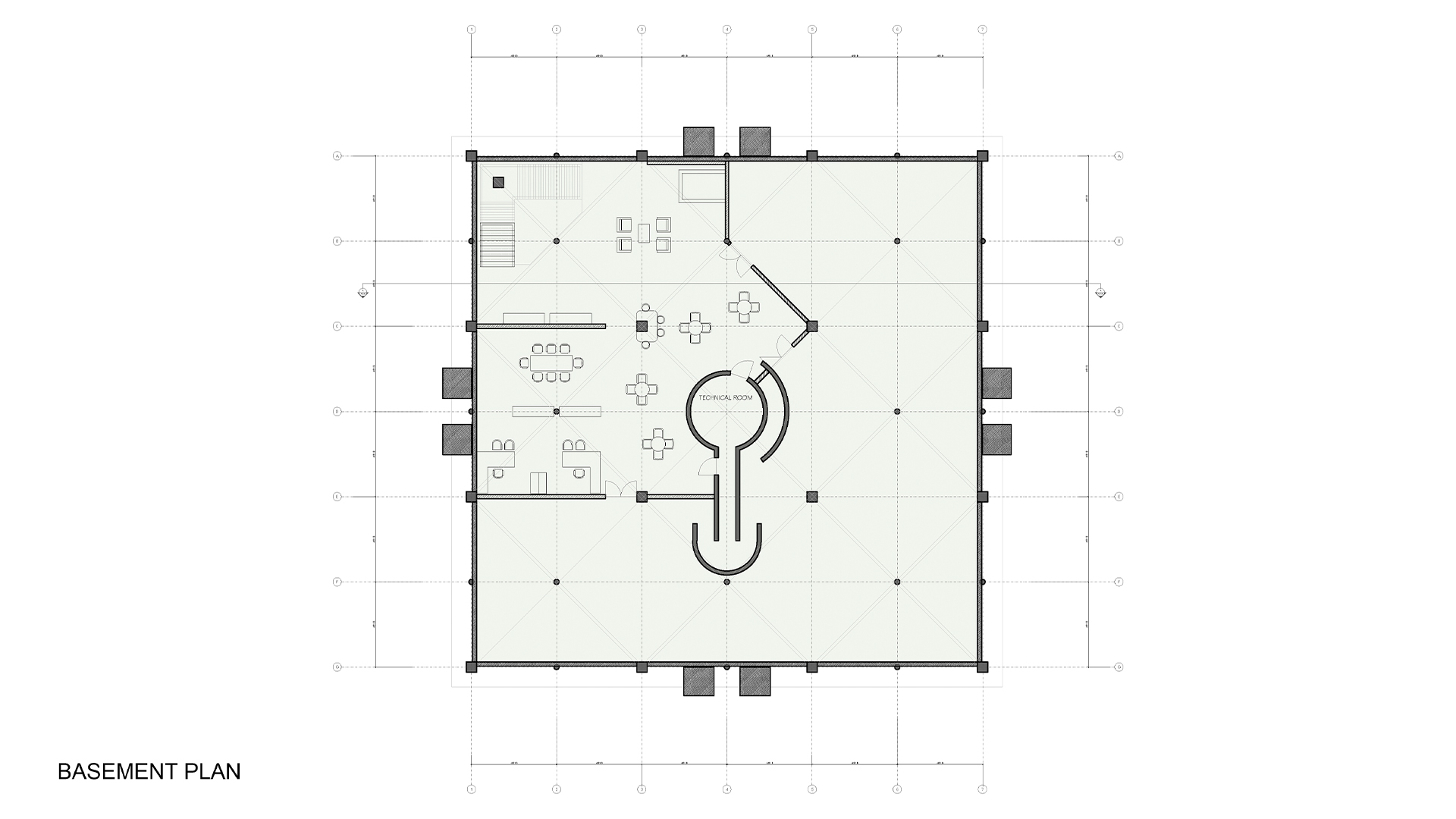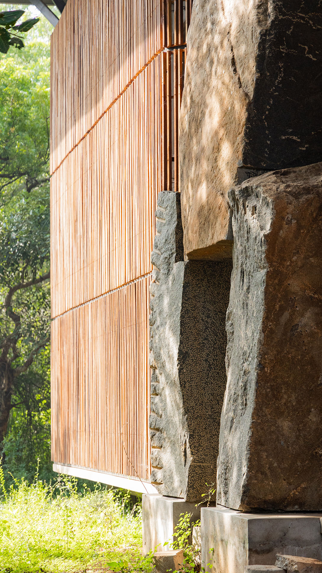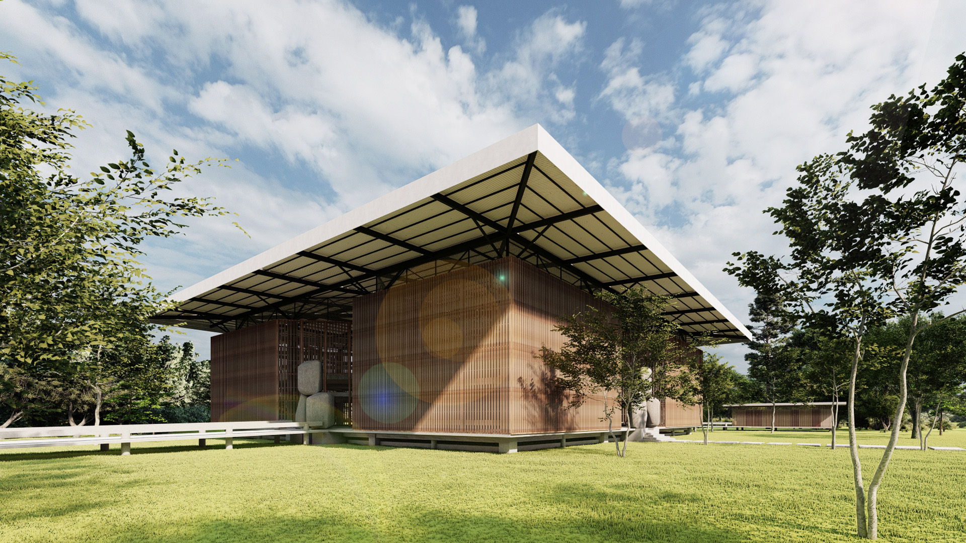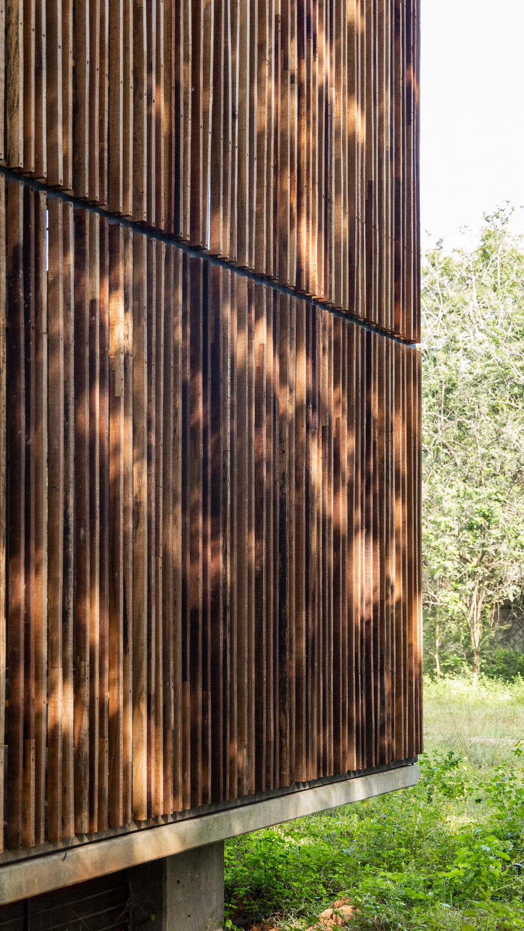 Maximizing natural ventilation and light, it was important to create a permeable facade that is easy to maintain and simple enough in its execution to engage the limited labor during COVID-19 and allow for speedy completion. Playful explorations of merging readily available materials with a new simplified construction approach resulted in a lightweight modular skin of the building made of fire-proofed solid wood lattice-work panels with mesh, versatile enough to ensure easy servicing and adaptation to future upgrades.